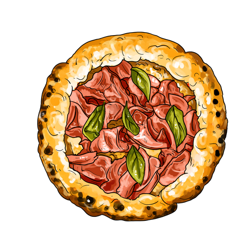 Pomodoro San Marzano, mozza fior di latte, jambon cuit, champignons, persil.